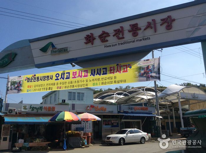 화순장은 화순에서 가장 큰 전통 5일장이다. 철따라 계절상품이 선보이고 있으며 어물전, 옹기전, 야채전, 가축전, 싸전 등이 옹기종기 모여 있어 장구경하는 재미가 쏠쏠하다. 또한 시원한 탁주와 함께 하는 간이주점이 즐비하여 장날이면 발디딜 틈도 없이 붐비고 있는데 인근의 광주사람들이 많이 온다. 1963년까지는 군청 옆 구시장에서 장이 열렸는데, 도시 발전과 함께 현재의 자리로 이전하 였다. 구시장 거리는 1919년 3.1만세 운동을 일으키려다 실패한 적이 있는 곳이기도 하다. 화순장은 광주와 인접한 관계로, 시골 재래시장 치고는 제법 큰 장으로 하루종일 사람으로 붐빈다.