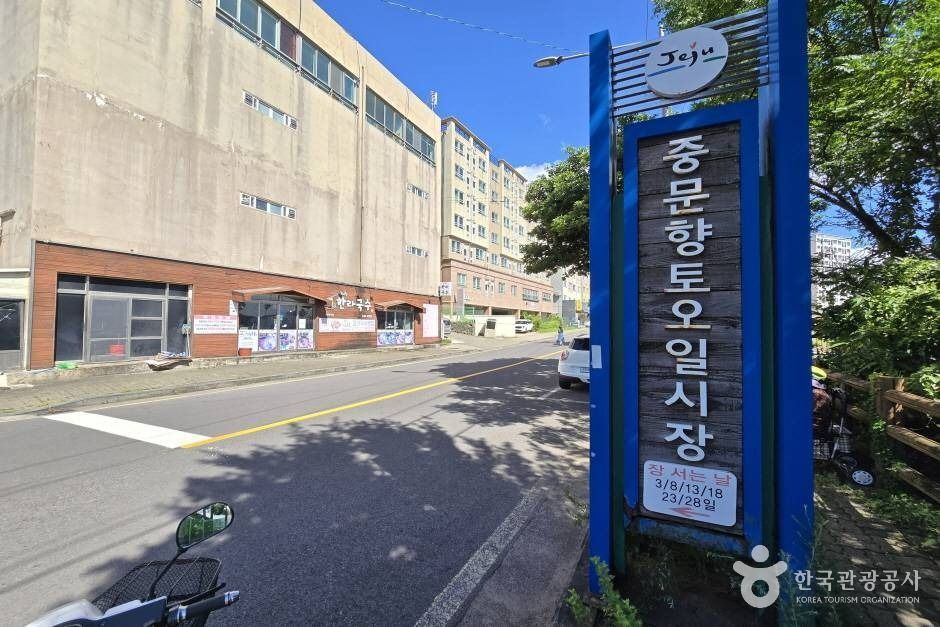 서귀포 관광 명소가 가득한 중문 관광단지 가운데 위치한 중문향토오일시장은 1950년대 피난민들과 함께 형성된 시장으로, 1965년 정식으로 장을 열어 현재까지 이어지는 역사를 지닌 시장이다. 이곳에서는 손수 농사지은 농산물과 물가에 나가 잡은 수산물을 주로 판매하며 주로 제주도 현지인들이 장을 보는 오일장이다. 서귀포매일올레시장이나 제주민속오일시장에 비하면 큰 규모의 시장은 아니나, 볼거리와 살 거리가 다양하다. 도심의 시장과는 전혀 다른 분위기로 옛 시골 장터 분위기와 할머니들의 소박함과 정겨움을 느낄 수 있는 곳이다. 시장을 둘러보다 보면 상인들의 삶을 엿볼 수도 있고 활기찬 에너지를 얻을 수 있다.