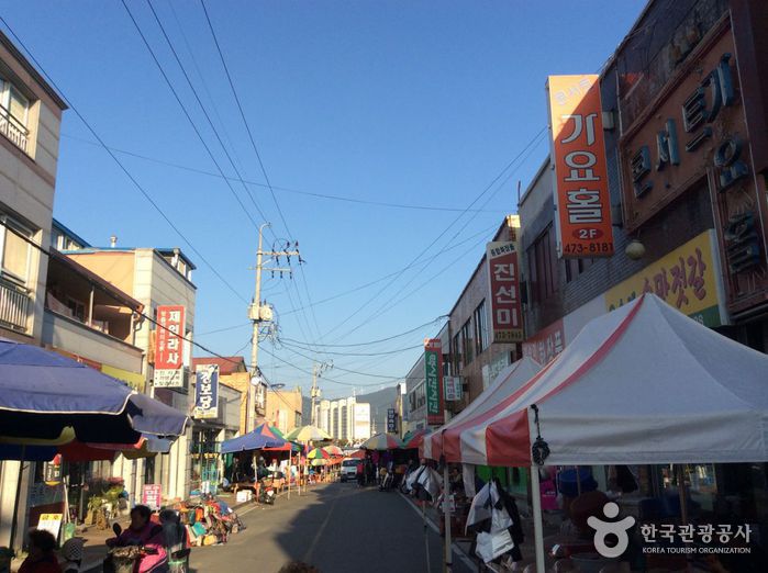 23, 28일에 장이 열린다. 현재 6,222m²의 부지에 104동의 점포가 들어서 있다. 예전에는 전통시장으로 사람들이 많이 찾았지만 현재는 도시의 발달과 유통시장의 변화로 인해 쇠퇴하였다. 하지만 현재도 그 명맥을 유지하며 5일장이 서고 있다. 거래 상품은 지역에서 생산하는 곡물류, 산지 부산물, 채소류 등이다.