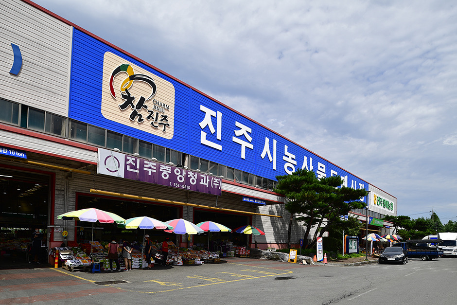 진주농산물도매시장은 농산물 유통구조 개선과 공정하고 투명한 거래 질서 확립을 통하여 신선한 농산물을 적기에 공급하고 적정가격을 유지함으로써 생산자와 소비자를 동시에 보호하고 나아가 지역 경제 활성화에 기여할 목적으로 개설하였다. 대지는 60,103㎡, 건물은 39,088㎡의 규모로 주차시설 또한 지상과 지하로 나뉘어 있으며 넉넉한 주차공간이 마련되어 있다. 1999년 11월에 개장하였고 취급 품목으로는 과일류, 채소류, 채소류, 버섯 등 106가지 품목을 판매하고 있다. 농산물 도매시장의 입주법인은 ‘진주원예농업협동조합’과 ‘진주중앙청과(주)’이다. 싱싱한 경매 농산물을 싸게 구입할 수 있어 일반 소비자들도 자주 찾는 곳이다.