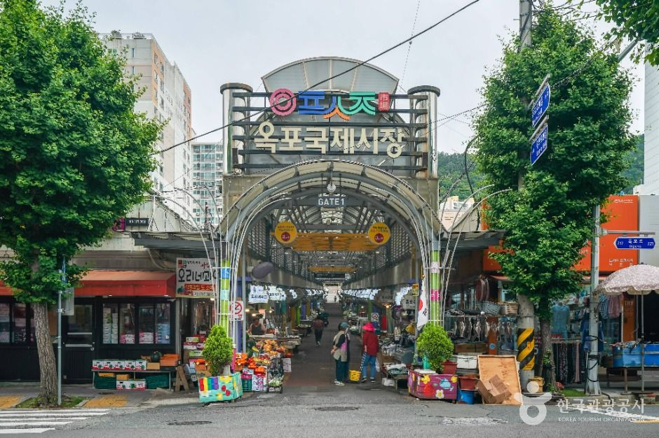 옥포 국제시장은 매일 열리며, 2017년 전통시장 활성화 사업에 선정되어 깔끔하게 정비된 시장으로, 가운데 길을 따라 시장이 조성되어 있다. 위로는 돔 형태의 천장도 있어 궂은 날씨에도 불편함 없이 방문할 수 있다. 옥포 국제시장에는 신선한 해산물을 바로 손질해서 사 가거나 회를 떠서 먹을 수도 있다. 그 외에도 떡집, 야채 가게, 옷가게, 분식집 등이 줄지어 있어 시장 주변 주민들이 자주 이용한다. 또한, 시장에서 도보로 5분 거리에 주차장도 마련되어 있으며 가까이에 버스정류장도 있어 접근성이 좋다.