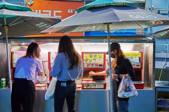 라면 끓이기에 익숙하지 않아도 가장 맛있는 라면을 먹는 방법이 있다. 바로 편의점 라면 기계를 이용하는 것. K-예능에 종종 등장해 궁금증을 자아내는 편의점 라면 기계는 라면을 고르고 기계에 올리기만 하면 알아서 물의 양, 시간 등을 조절해 최적으로 끓여주어 최고의 라면을 맛볼 수 있다. 여기에 삼각김밥 한 개를 곁들이면 식사가, 맥주 한 캔을 곁들이면 안주가 된다.