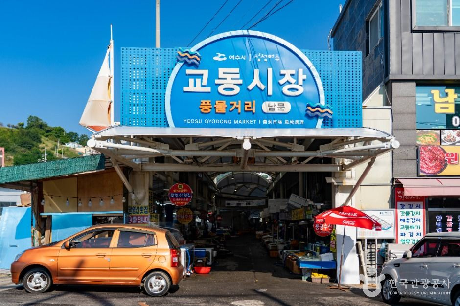 여수 교동시장은 깨끗한 여수 앞바다에서 잡은 싱싱한 해산물이 가득한 곳이다. 원래 이곳은 생선을 잡아오면 좌판을 벌이고 판매하던 자그마한 곳이었는데, 현재는 길이가 1㎞에 다다를 정도로 상당한 규모의 상설 시장이 됐다. 상가보다 좌판이 많아 도시 시장과 달리 지방 5일장 같은 푸근한 분위기가 느껴진다. 이곳은 새벽 시장이라 아침 일찍 가야 시장의 분주함과 사람 사는 모습을 구경할 수 있으며, 오후 1~2시면 장사를 마치는 상인들이 많다. 채소·과일·약재 등도 취급하지만, 주요 품목은 생선·건어물 등 수산물이다. 갈치와 참조기, 새우와 조개, 양태와 서대 등 다양한 수산물이 좌판마다 수북이 쌓여 있다. 이곳은 특이하게 생선 한 마리당 흥정하는 게 아니라 뭉텅이로 쌓아놓고 가격을 부른다. 장 보는데 먹는 재미가 빠질 수 없다. 맛이 아주 좋기로 유명한 금풍생이는 삼삼하고 고소하며 특히 내장이 일품이다.