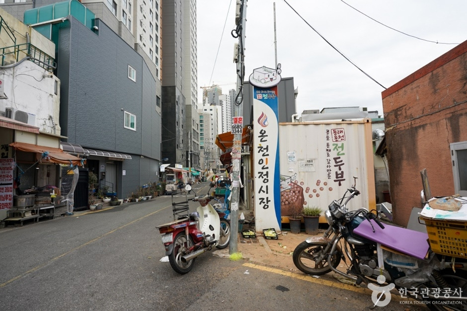 온천시장은 오래된 전통재래시장으로 부산의 유명한 온천지구인 동래온천장에 위치하고 있다. 오래전부터 시장이 형성되어 운영되어 오던 곳으로 지금은 현대화되어 지붕 가림막도 설치되어 있어 비가 와도 장사를 할 수 있도록 되어 있다. 온천시장은 다른 재래시장과 마찬가지로 다양한 먹거리 들을 판매하고 있으며 부산의 전통 있는 음식인 어묵과 건어물, 야채 등을 판매하고 있는 곳이다. 온천지구답게 족욕장이 설치되어 있어 족욕체험을 할 수 있는 곳이므로 방문 시 수건을 챙겨 가야 족욕체험을 할 수 있다. 온천시장은 맛있는 먹거리와 구수한 부산의 사투리를 들을 수 있는 정겨운 시장이다.