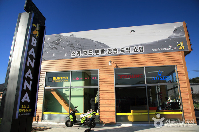 바나나 렌털샵은 서울에서 약 40분이면 도착하는 곤지암 스키장 입구에 위치하고 있으며, 일반인은 물론 마니아도 충분히 만족할 수 있는 최신 디자인의 스키, 보드, 장비를 사용하고 있어 취향껏 선택이 가능하며 매장이 넓어 단체 이용 시 준비시간이 최소화될 수 있고 넓은 주차장을 보유하고 있어 주차걱정 없이 편안하게 매장이용이 가능하다. 또한 전문 스키와 보드 강사님이 있어 전문적인 강습이 가능하다.